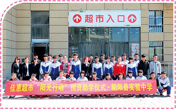 4月20日,上午9時(shí),北國的初春陽光明媚,在副總經(jīng)理劉學(xué)慧的帶領(lǐng)下,佳惠超市有限公司一行5人帶著佳惠人的夢(mèng)想、責(zé)任、使命和感恩回報(bào)社會(huì)的火熱之心,踏上了去往朝陽縣實(shí)現(xiàn)中學(xué)的路程?;锇閭兇诵袑閷?shí)驗(yàn)中學(xué)的部分貧困學(xué)生送去佳惠“陽光行動(dòng)”的溫暖。
